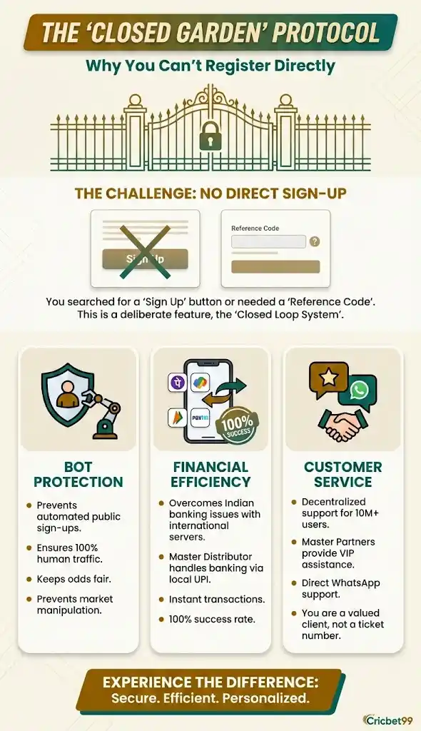 You have likely visited a Cricbet99 link and looked for a “Sign Up” button. You didn’t find one. Or if you did, it asked for a “Reference Code” you didn’t have.