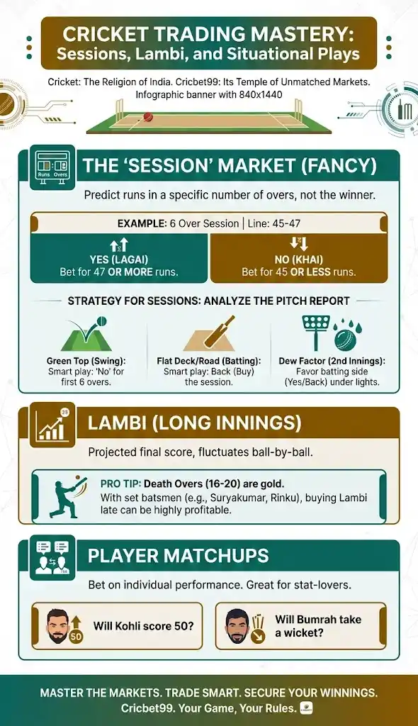 Cricket Trading Mastery: Sessions, Lambi, and Situational Plays